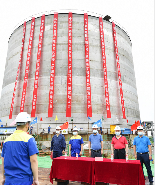 安山液化天然氣儲存基地擴(kuò)建項目自2018年底正式開工建設(shè)后,克服了溶洞、灰?guī)r地質(zhì)條件等諸多困難,2020年突如其來的新冠肺炎疫情再次打亂了項目建設(shè)計劃。項目儲罐外罐建成落地,標(biāo)志著該項目取得了階段性建設(shè)成果,為確保項目如期完成建設(shè)投產(chǎn)目標(biāo)奠定了堅實(shí)基礎(chǔ)。