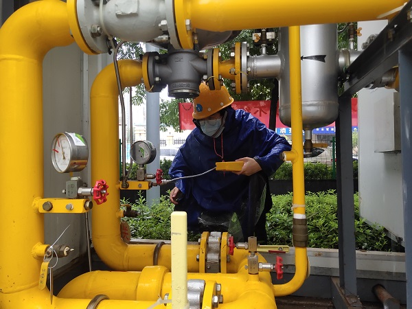 天然氣公司武昌管線所南湖站巡線員余澤洋檢查野芷湖西路紫緣酒店調(diào)壓設(shè)備,對(duì)地鐵八號(hào)線農(nóng)科院地鐵站施工監(jiān)護(hù)點(diǎn)進(jìn)行安全檢查。(本網(wǎng)綜合報(bào)道)