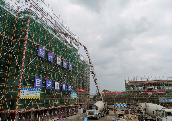 從建設之初,項目就面臨著工期緊、難度大、標準高的重重壓力。受地質條件影響,原設計的靜壓預制管樁無法實施,項目管理團隊審慎研究,變更為鉆孔灌注樁。6月中旬至7月中旬,寧波地區(qū)進入梅雨季節(jié),土建施工基本處于停滯狀態(tài),建筑主體結構施工周期被迫二次調整壓縮。為實現(xiàn)合同約定工期目標,項目管理團隊調動參建各方力量,將4個主體建筑調整為同步施工,盡量減少工序銜接時間,項目整體進度得到有力保障。