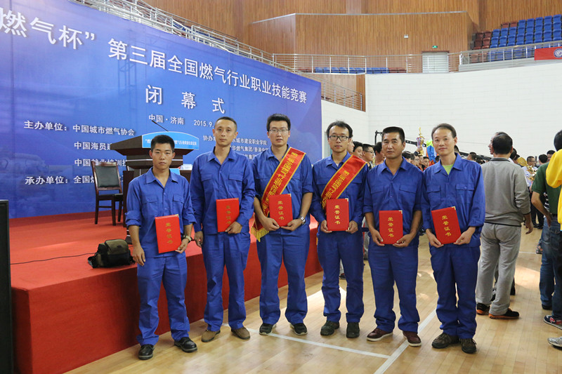 該項(xiàng)競(jìng)賽是全國(guó)燃?xì)庑袠I(yè)規(guī)格最高、水平最高、參與范圍最廣的技能比賽。本次競(jìng)賽共有來(lái)自全國(guó)28個(gè)省、自治區(qū)、直轄市的176名參賽選手參加。在理論和實(shí)操比賽中,代表湖北省隊(duì)參賽的6名選手,嚴(yán)守紀(jì)律,規(guī)范操作,爭(zhēng)分奪秒,展現(xiàn)了湖北燃?xì)饴毠ち己玫木耧L(fēng)貌和熟練的崗位技能。經(jīng)過(guò)激烈角逐,郭金巖(中石油昆侖燃?xì)夂狈止荆┇@得“燃?xì)夤艿勒{(diào)壓工”單項(xiàng)總成績(jī)第9名,李勛(武漢市天然氣有限公司)獲得“燃?xì)夤艿勒{(diào)壓工”單項(xiàng)總成績(jī)第28名,錢(qián)輝濤(武鋼江南公司)獲得“燃?xì)夤艿勒{(diào)壓工”單項(xiàng)總成績(jī)第48名;武漢燃?xì)鉄崃こ逃邢薰窘鹫髂?、鄧聰分別獲得“燃?xì)饩甙惭b維修工”單項(xiàng)總成績(jī)第43名和第47名,梅基發(fā)(武鋼江南公司)獲得“燃?xì)饩甙惭b維修工”單項(xiàng)總成績(jī)第46名。郭金巖獲得“燃?xì)夤艿勒{(diào)壓工”的二等獎(jiǎng),李勛、錢(qián)輝濤、梅基發(fā)、金征南、鄧聰五名選手均獲得了組委會(huì)頒發(fā)的“競(jìng)賽榮譽(yù)獎(jiǎng)”。